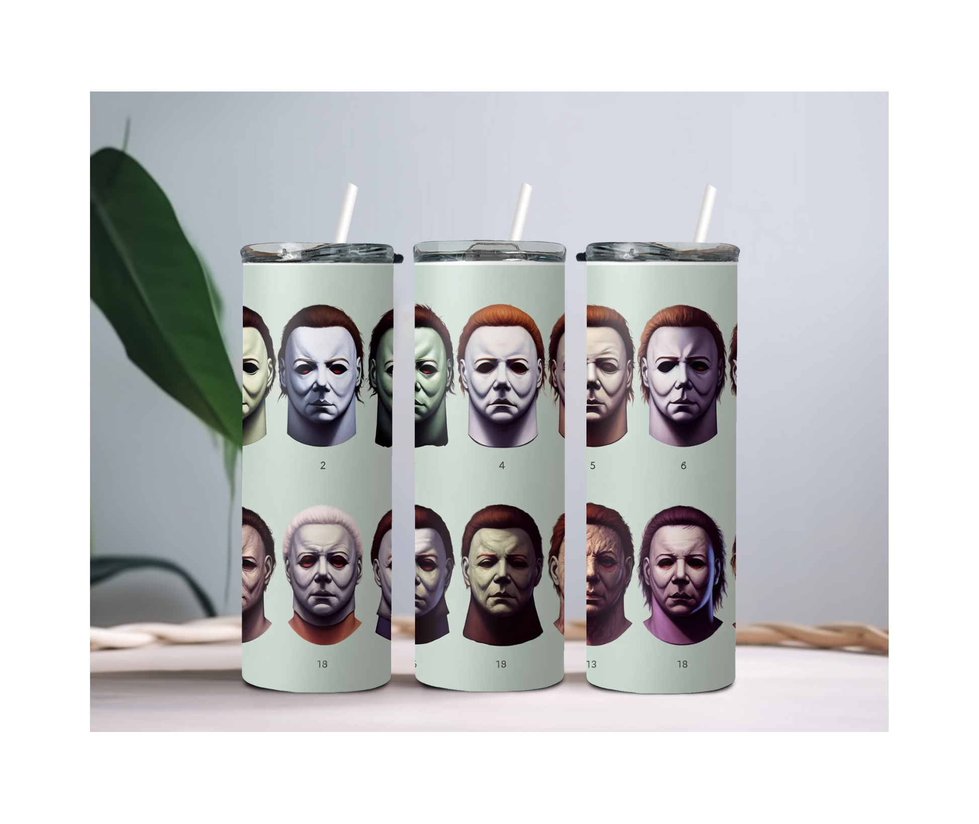 ποΈ Witness the haunting transformation of one of cinema's most chilling characters with our unique Horror Icon Tumbler. This collector's item features a sequential design showcasing the evolution of the iconic horror figure, each face a deeper dive into darkness. π€π